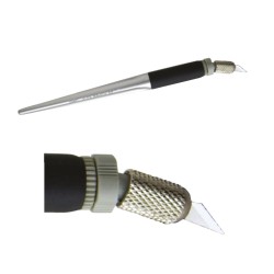 Ce stylet en aluminium avec grip est doté d'une lame rotative à 360°. Il a une longueur de 145 mm et un diamètre de 11 mm. Il est livré avec 5 lames de 30°.