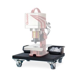 Ce chariot sur roulettes QUEEN-CHARIOT est conçu pour le déplacement des presses pneumatiques semi-automatiques QUEEN. Ses roues sont verrouillables pour un maximum de sécurité pendant l'utilisation de la presse ou pour son stockage. 2 bacs de rangements sont fournis pour le stockage des oeillets et rondelles lors de la pose.
