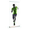 Grâce à son système de fixation par clip, il est très facile de changer le visuel. Ce roll-up est livré avec son sac de transport.