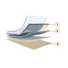 Ce film de décoration coulé multicouche est éco-responsable étant donné qu'il a une base issue à 80 % de polyester recyclé(1) et sa couche colorée contient 20 % de poudre de coquillages(2).