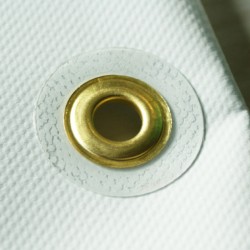 Ces renforts adhésifs transparents en PVC de 600 µ et d'un diamètre de 40 mm sont traités anti-UV. Il sont à placer avant la pose de l'oeillet.