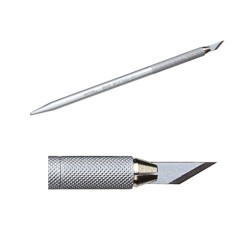 Ce stylet en aluminium d'une longueur de 125 mm et d'un diamètre de 0.6 mm est livré avec 5 lames 30° et 1 aiguille.
