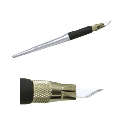 Ce stylet en aluminium avec grip d'une longueur de 140 mm et d'un diamètre de 11 mm est livré avec 5 lames de 30° et 5 lames de 54°.
